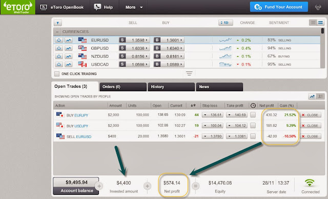 เห็นไหมครับไม่ยากเลยสำหรับการลงทุนใน eToro แค่เงินลงทุนเพียงเล็กน้อย เริ่มต้นแค่ 50 - 100 เหรียญ คุญก็มีโอกาสได้ผลกำไรตอบแทนกลับมาสูงถีง 100 เปอร์เซนครับ แต่สำหรับผมแล้ว แนะนำให้ลงทุน ซัก 500 เหรียญกำลังเหมาะครับ เวลาผลกำไรออกมาทีจะได้เป็นกอบเป็นกำครับ
